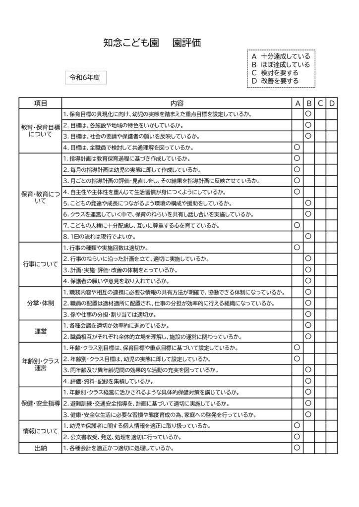 令和6年度 知念こども園 園評価